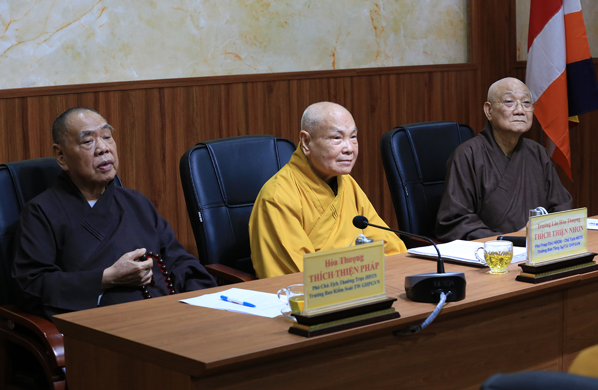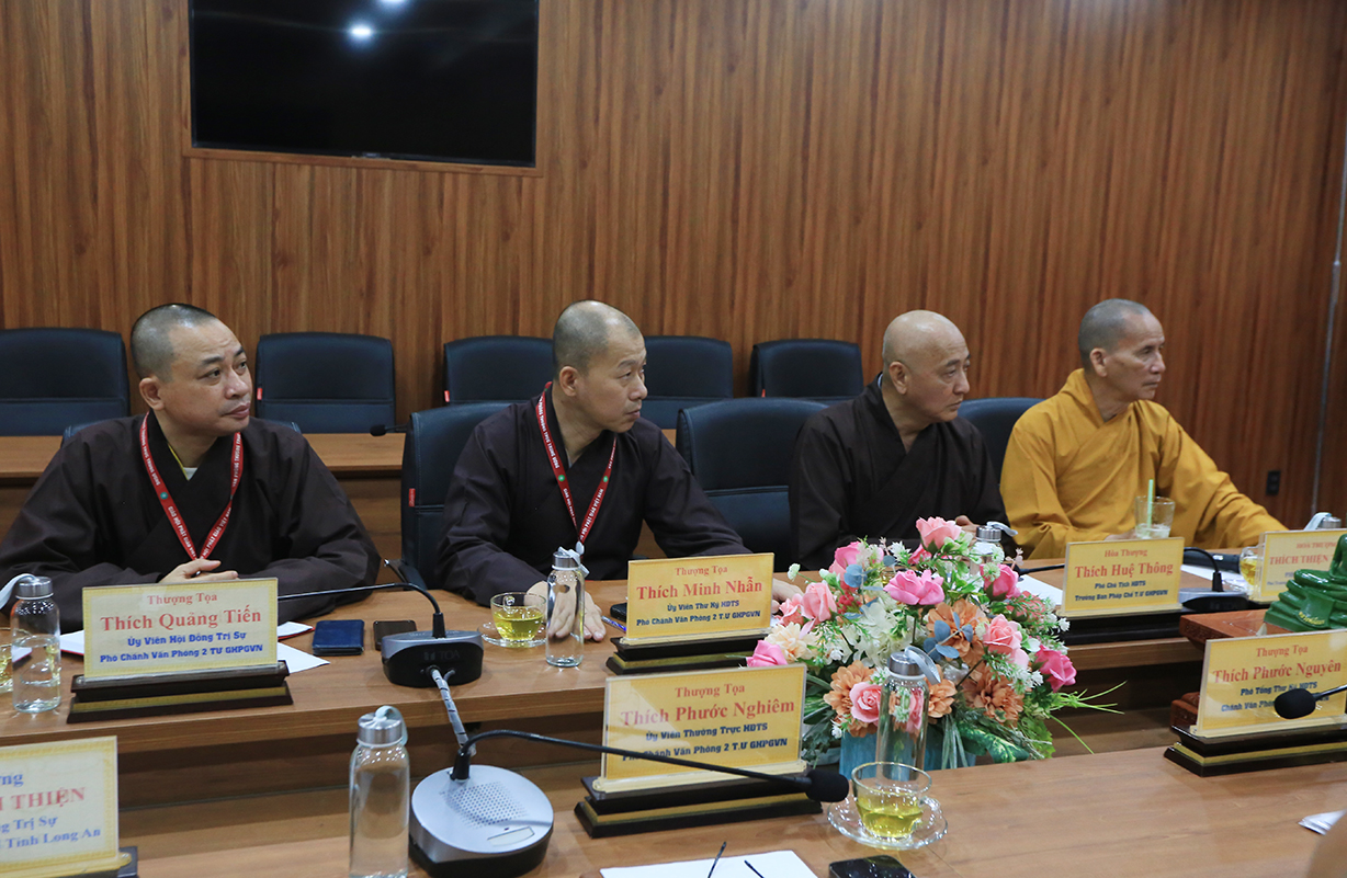 Tham dự phiên họp có, Trưởng lão Hòa thượng Thích Minh Thông – Phó Thư ký HĐCM; Trưởng lão Hòa thượng Thích Thiện Pháp – Ủy viên Thường trực HĐCM, Phó Chủ tịch Thường trực HĐTS, Phó Trưởng Ban Thường trựcBan Tăng sự Trung ương; Hòa thượng Thích Thiện Thống – Phó Chủ tịch HĐTS, Phó Ban kiêm Chánh Thư ký Ban Tăng sự Trung ương; Hòa thượng Thích Lệ Trang, Hòa thượng Thích Huệ Thông – đồng Phó Chủ tịch HĐTS, Phó Ban Tăng sự Trung ương; Thượng tọa Thích Phước Nguyên – Phó Tổng Thư ký kiêm Chánh Văn phòng Trung ương; Thượng tọa Thích Minh Nhẫn, Uỷ viên Thư ký HĐTS, Phó văn phòng 2 Trung ương; cùng chư Tôn đức Văn phòng 2 Trung ương và lãnh đạo Ban Trị sự tỉnh Bình Dương, Long An.