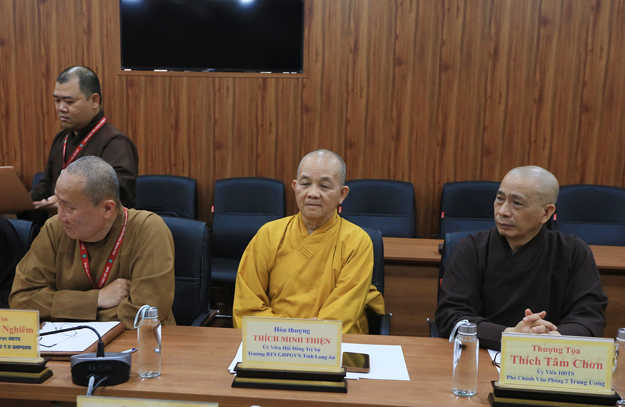 Nhân đây, Hòa thượng Thích Minh Thiện – Trưởng Ban Trị sự tỉnh Long An cũng báo cáo kế hoạch tổ chức Đại giới đàn Đạt Pháp do Ban Trị sự Phật giáo tỉnh tổ chức, lần đầu áp dụng Bộ quy tắc tổ chức Giới đàn của Ban Tăng sự Trung ương.