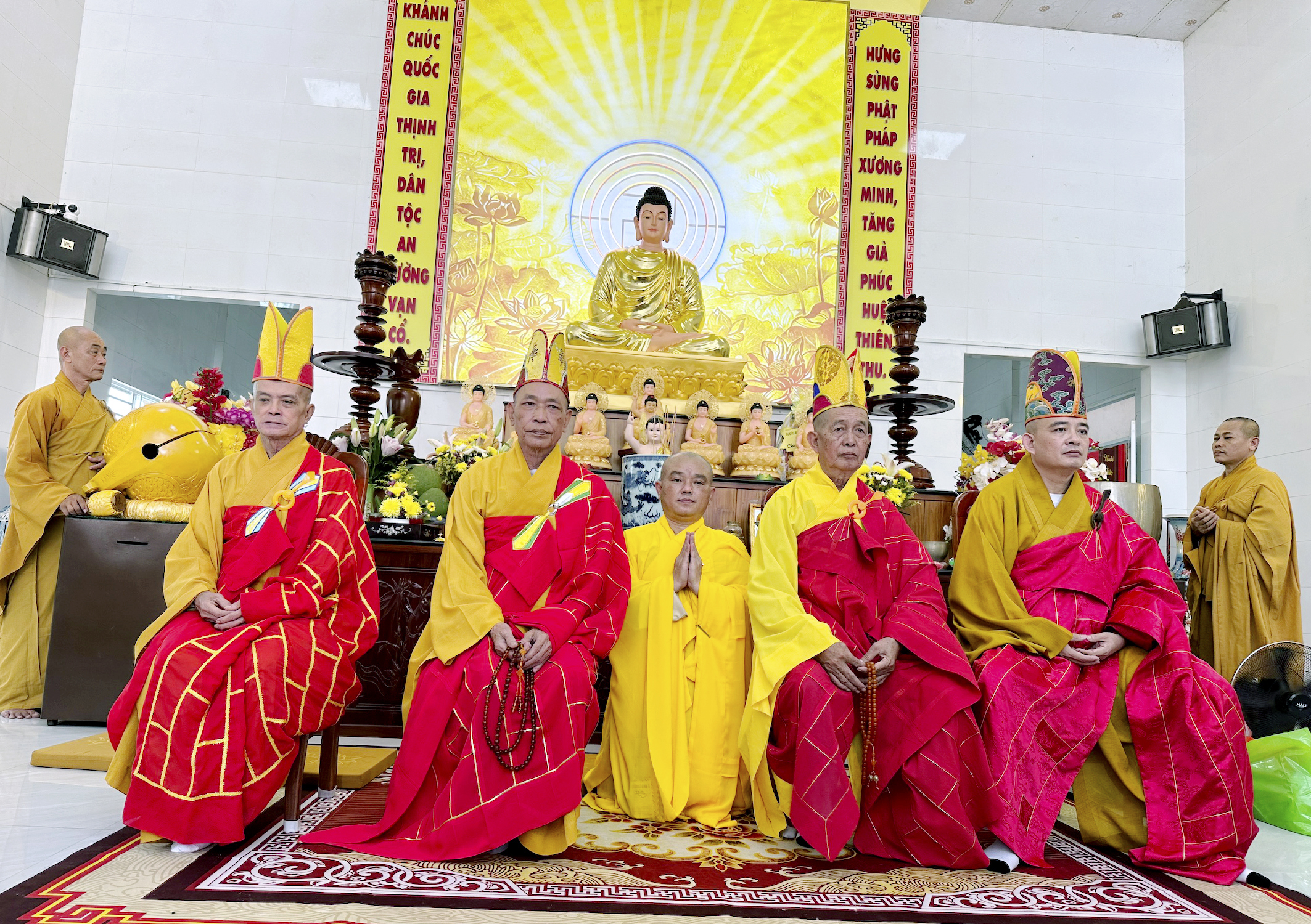 Buổi lễ có sự chứng minh của chư Tôn đức: HT. Thích Thiện Huệ – Thành viên HĐCMTW GHPGVN, Chứng minh BTSGHPGVN tỉnh Long An; HT. Thích Thiện Tài- Chứng minh BTSGHPGVN tỉnh Long An; HT. Thích Tắc Quảng- Chứng minh BTSGHPGVN Huyện Thủ Thừa; TT. Thích Phước Cường- Ủy viên thường trực, Trưởng ban Nghi lễ GHPGVN tỉnh Long An; Đại đức Thích An Khang- Ủy viên thường trực, Trưởng BTS GHPGVN Huyện Vĩnh Hưng cùng chư Phật tử đạo tràng Khánh Hưng.