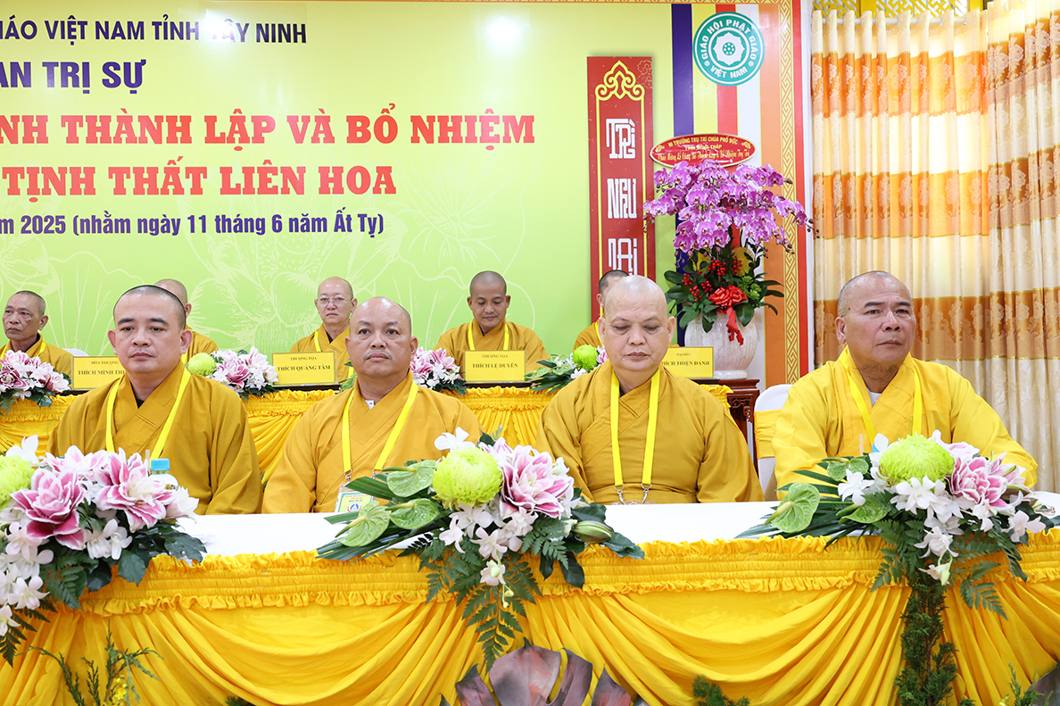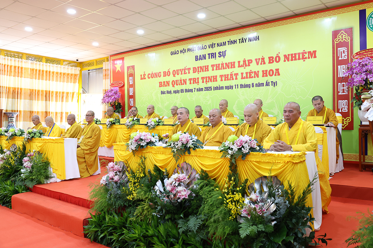 Sáng ngày 05 tháng 7 năm 2025 (nhằm ngày 11 tháng 6 năm Ất Tỵ), được sự cho phép của lãnh đạo chính quyền các cấp, BTS GHPGVN tỉnh Tây Ninh long trọng tổ chức Lễ Công Bố Quyết Định Thành Lập Và Bổ Nhiệm Ban Quản Trị Tịnh thất Liên Hoa tại xã Đức Huệ, tỉnh Tây Ninh.