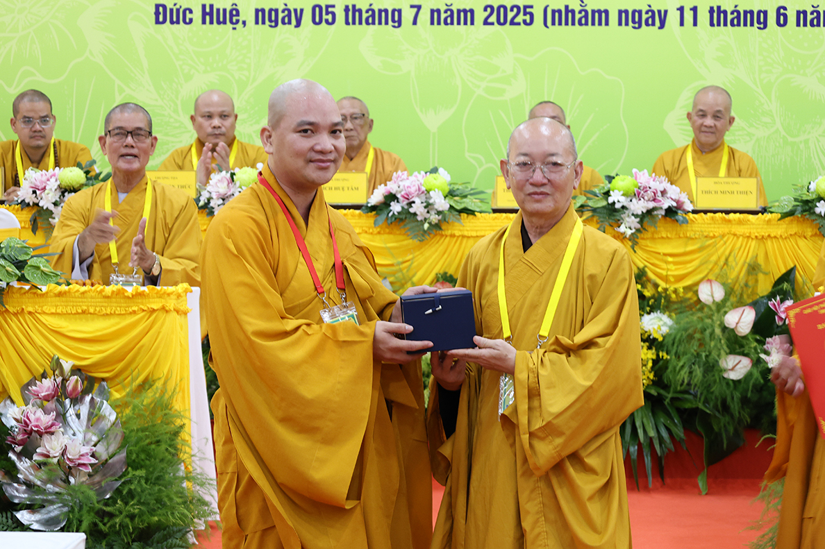 Buổi lễ được lắng nghe ý kiến phát biểu chỉ đạo của Hòa thượng Thích Minh Thiện. Trong lời chỉ đạo Hòa thượng đã ôn lại lịch sử mấy ngày năm Phật giáo đồng hành và phát triển cùng dân tộc, nêu cao tinh thần đoàn kết của Phật giáo cả nước, kế thừa tinh hoa ấy cho đến hôm nay, Phật giáo Long An cũng đã thành tựu và phát triển trên 40 năm thành lập và phát triển, Hòa thượng mong muốn chư tôn đức nơi vùng biên giới nổ lực tu tập, phụng sự chúng sinh và góp phần chung tay vào các hoạt động an sinh xã hội, xây dựng đoàn kết hòa hợp giữa các tôn giáo, nhắn nhủ đến Chư tôn đức đã được giáo hội giao phó trách nhiệm Ban Đại diện mới cần liên kết với chính quyền địa phương để giúp đỡ Tăng Ni có cống hiến đới với Tam Bảo vùng quê hương Đức Huệ mãi mãi phát triển tốt đẹp, luôn giữ vững chí nguyện “trên đời bốn ơn nặng, dưới cứu khổ ba đường”.